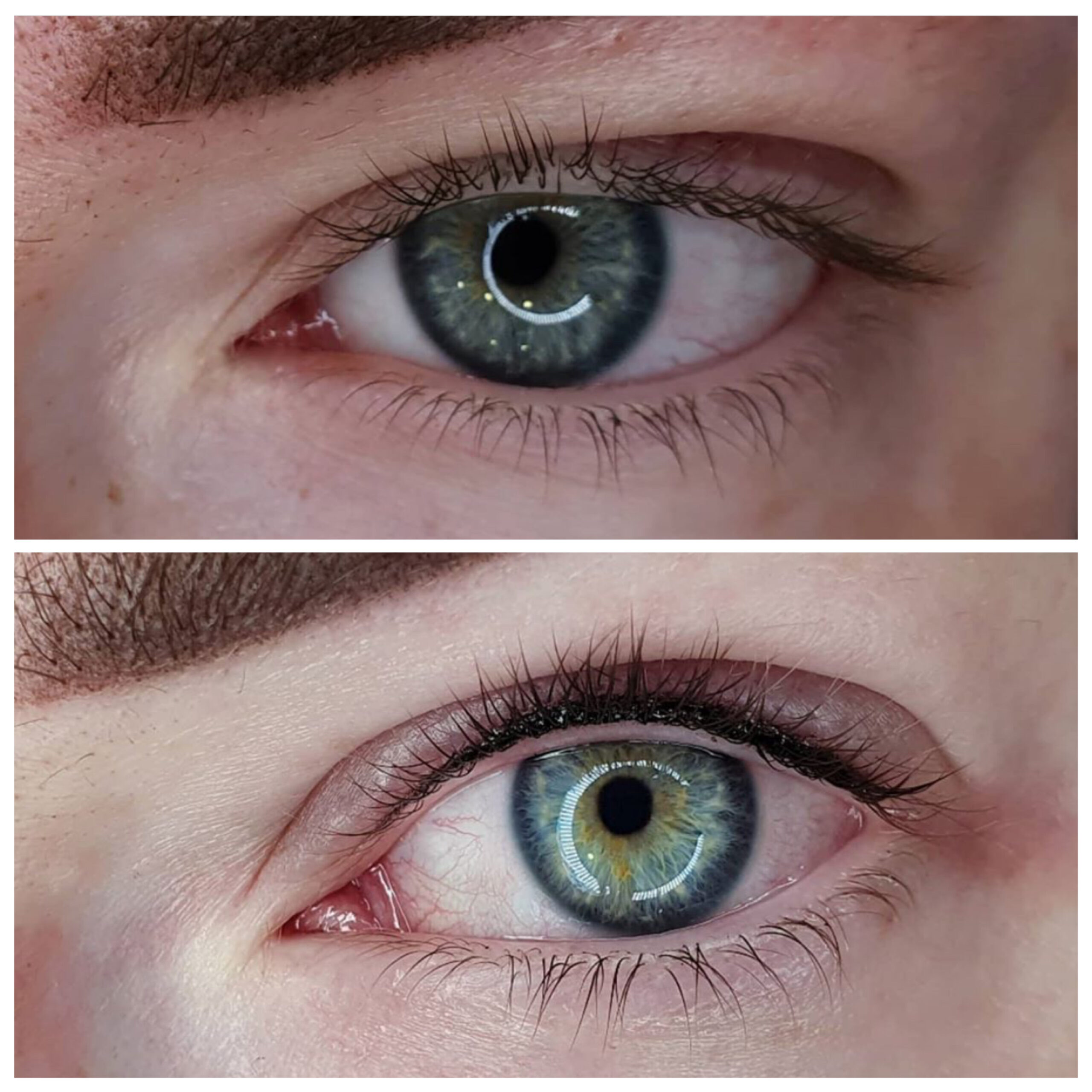 A numbing cream is applied before the procedure. Most clients describe it as mild pressure or tickling along the lash line, not painful.