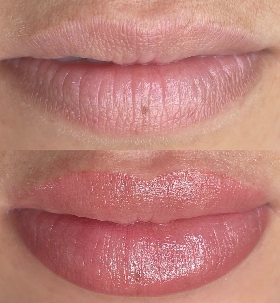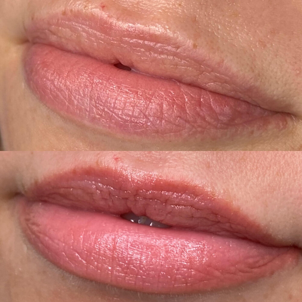 Lip Blush creates a soft, natural tint that enhances the shape and color of the lips. Once healed, lips appear more even, defined, and naturally refreshed. Results last 2–3 years, gradually fading over time.
