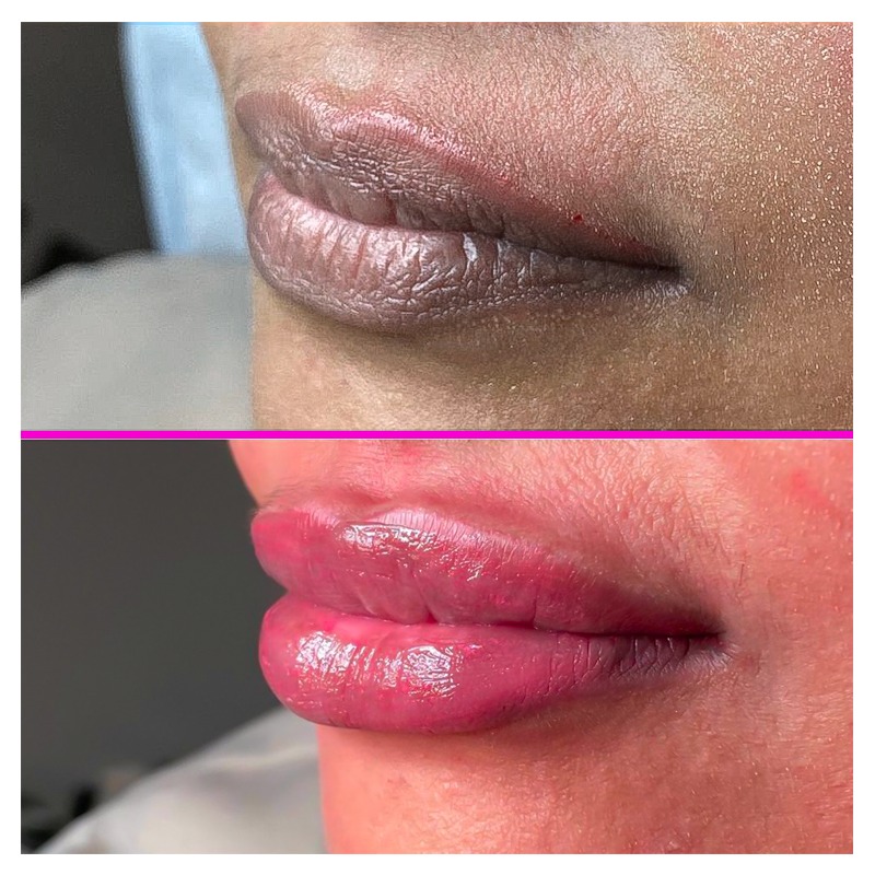 Enhances the natural shape, symmetry, and color of your lips while giving the illusion of up to 30% more volume without fillers. Heals into a soft tint that lasts 2–3 years.